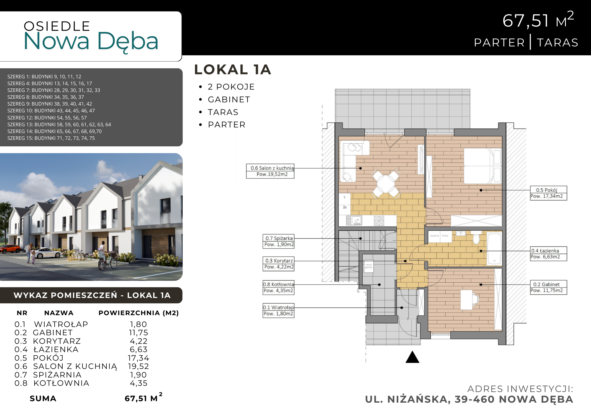 Karta mieszkania Lokal 1A 67,51m2 parter z tarasem Osiedle Nowa Dęba