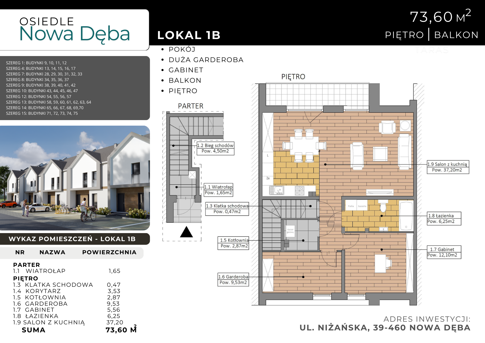 Karta mieszkania Lokal 1B 73,60m2 piętro z balkonem Osiedle Nowa Dęba