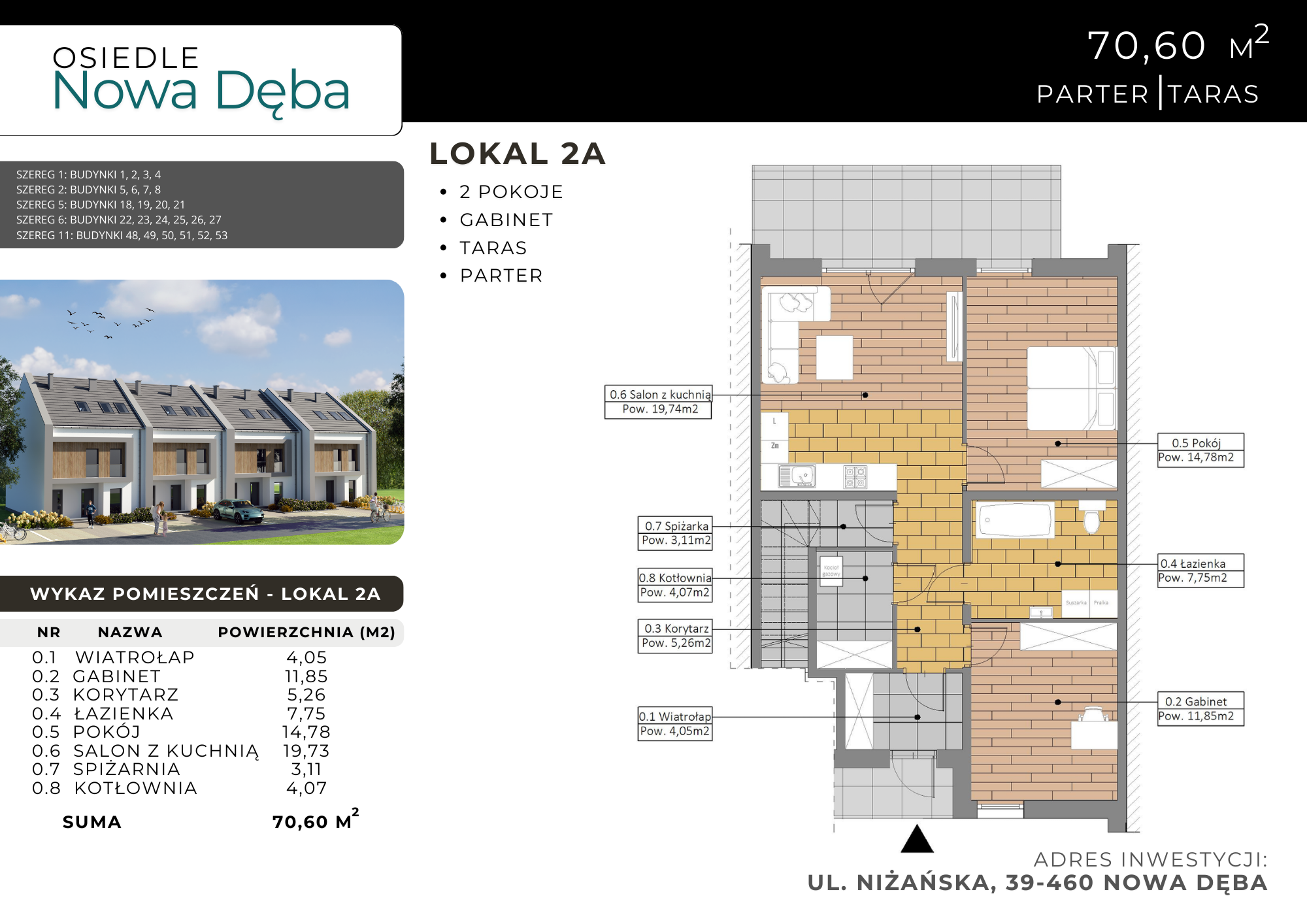 Karta mieszkania Lokal 2A 70,60m2 parter z tarasem Osiedle Nowa Dęba