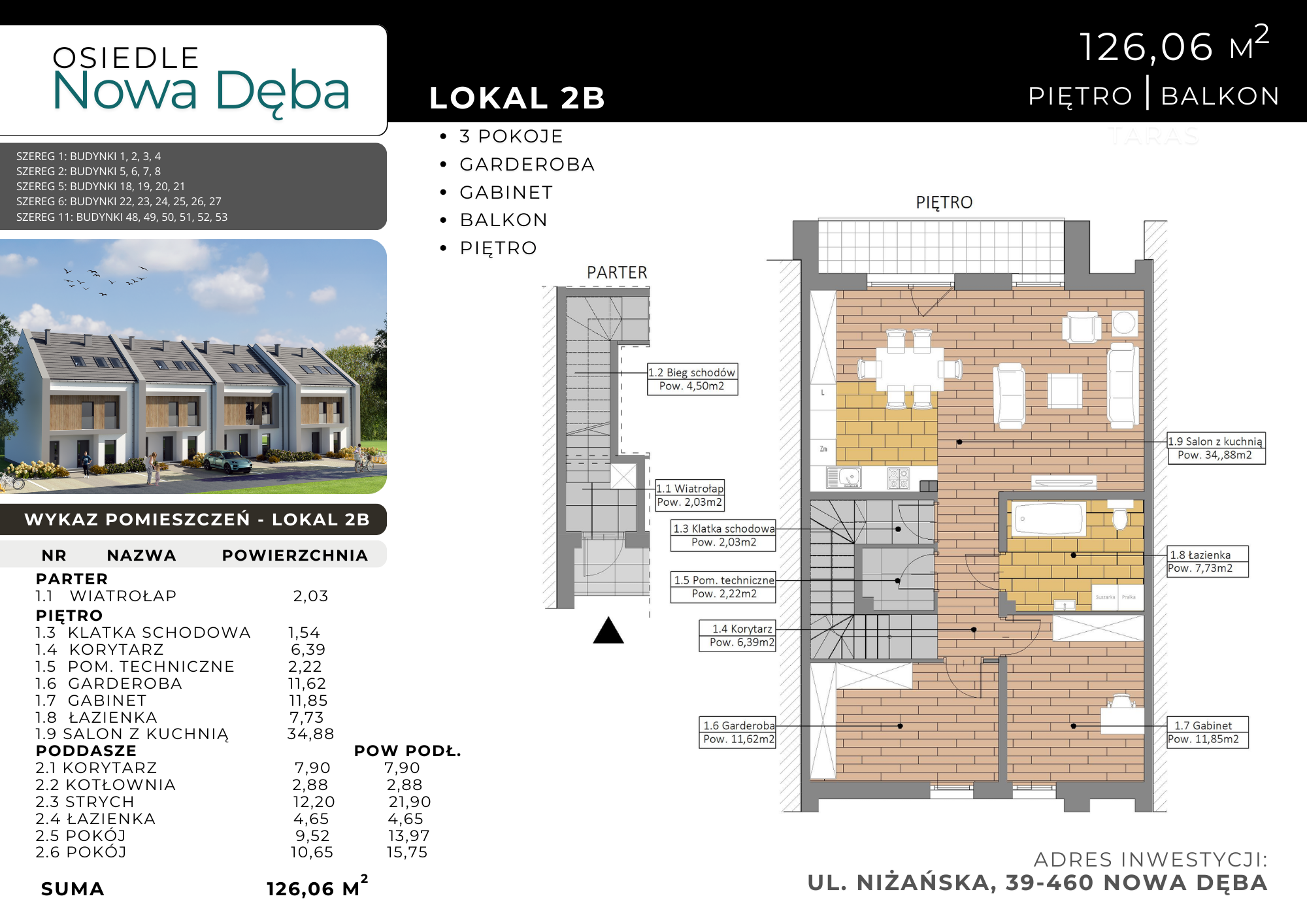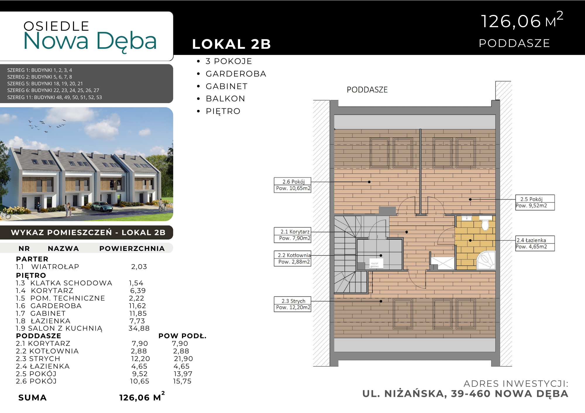 Karta mieszkania Lokal 2B poddasze 126,06m2 Osiedle Nowa Dęba